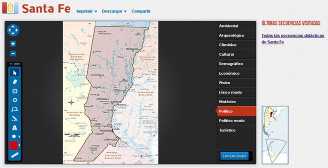 Un atlas interactivo con mapas para dibujar, superponer, recorrer, marcar o pintar en tu computadora. También podés imprimirlos, descargarlos y compartirlos en las redes sociales.